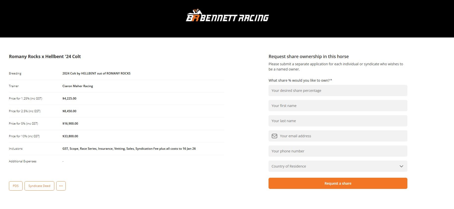While we compile all of Lot 744’s information required for syndication, please in the interim email sales@bennettracing.com.au to register interest and/or reserve a share